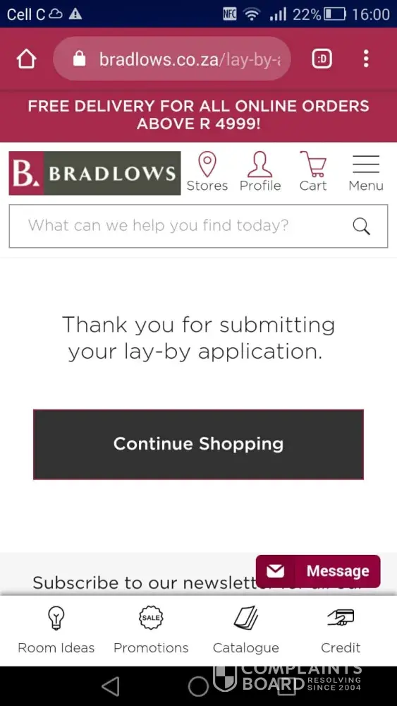 I recently placed a credit application on your online portal at incredible connection. The application was approved and I had to go to the store in Bloemfontein.