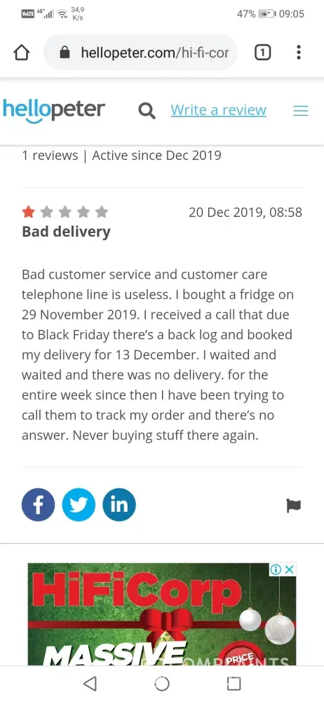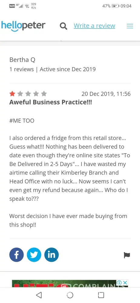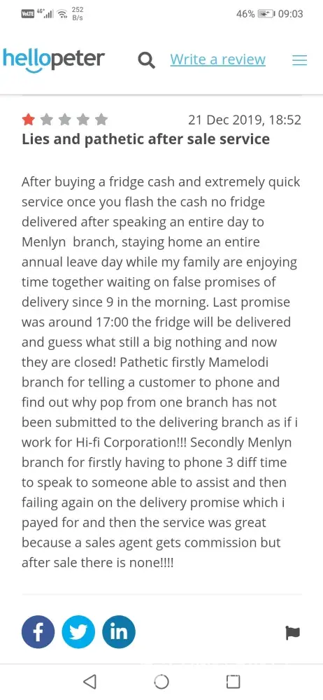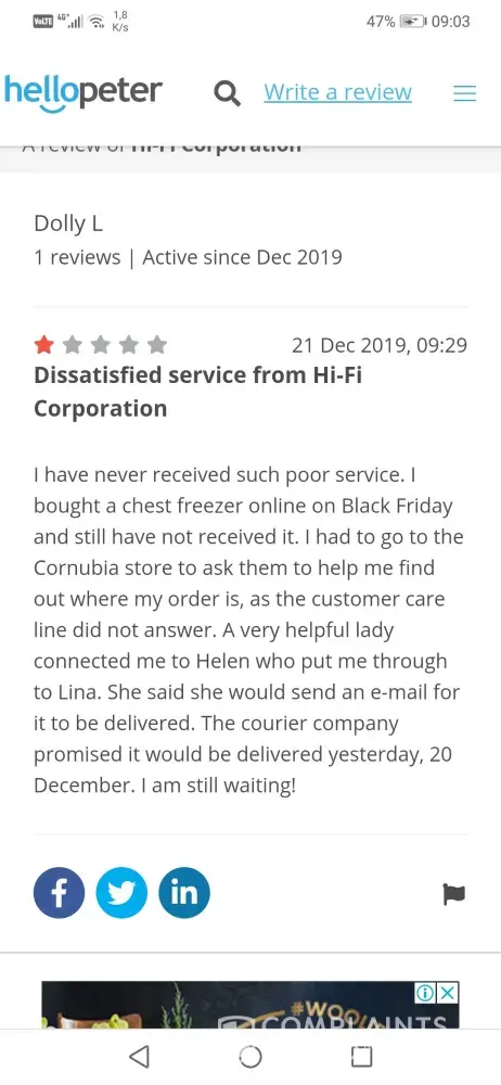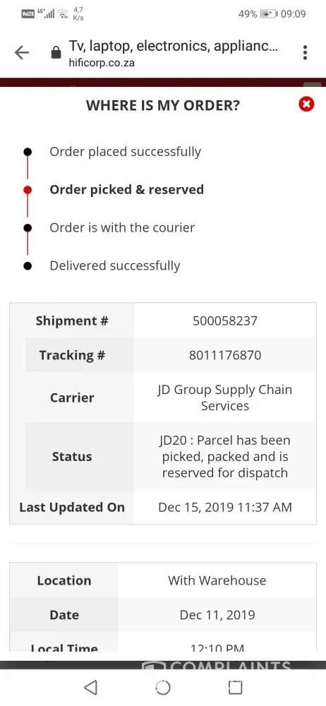 JDG Financial Services / JD Group hifi corp - still no delivery on items purchased
