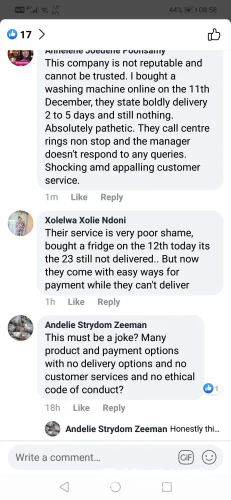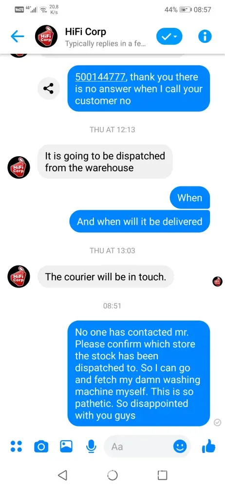 I am really not someone who complains but HIFI CORP has me up in arms waiting for a fuxking washing machine to be delivered.