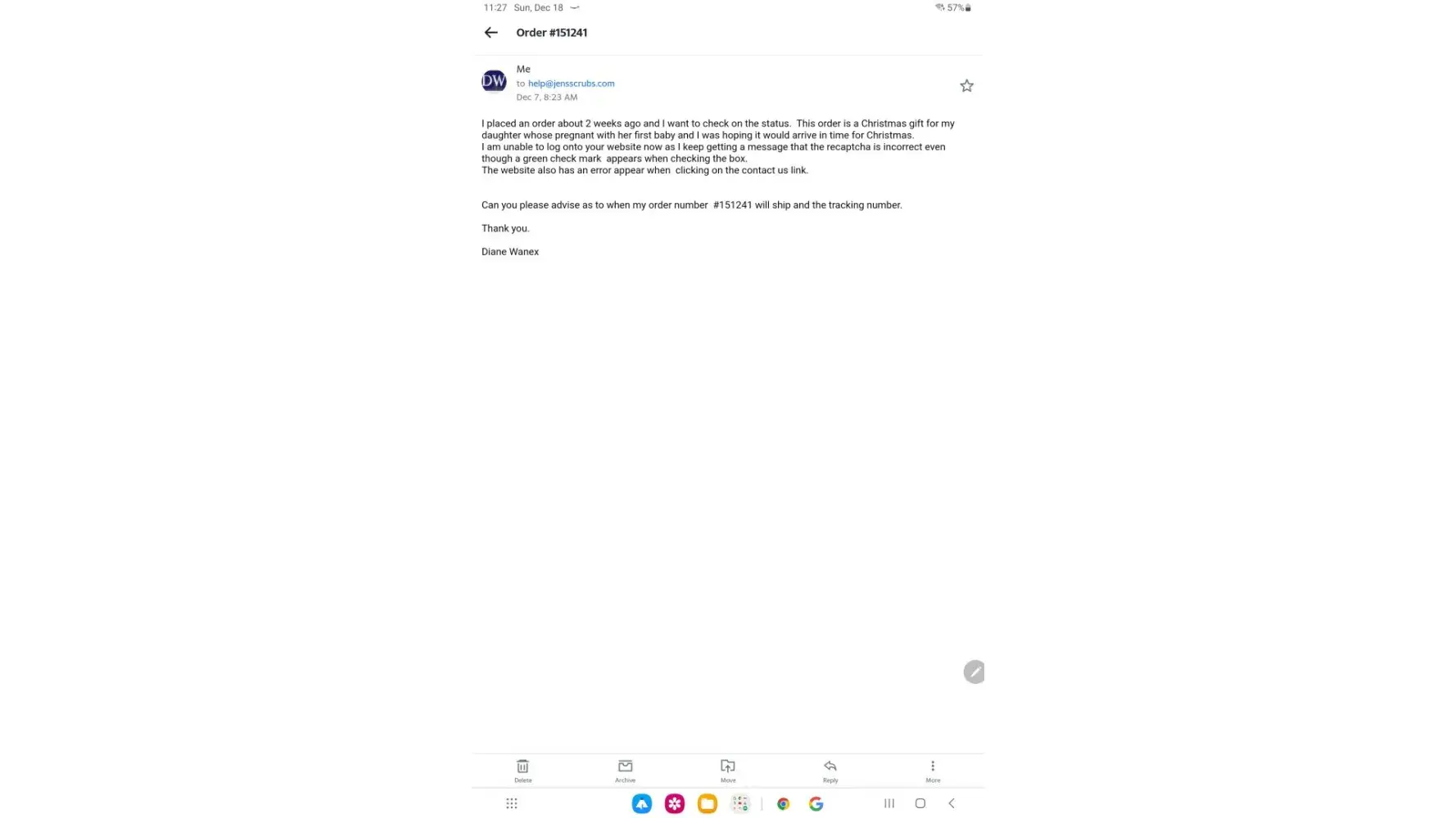 Never received order