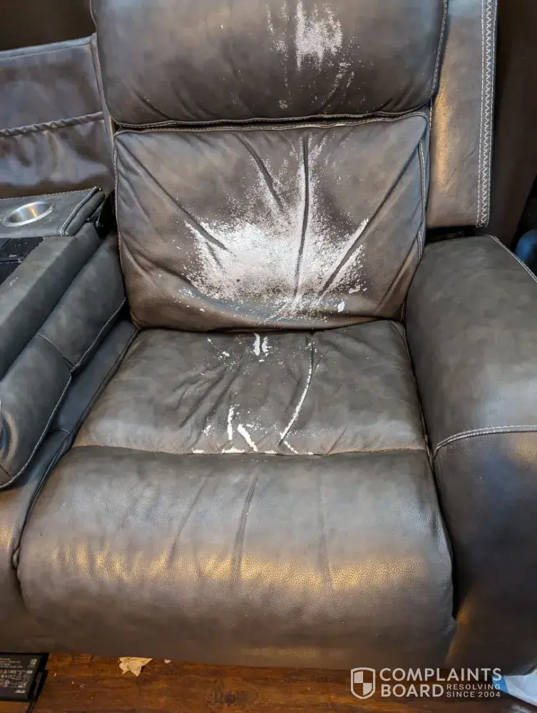 Attached is a photo of my recliner sofa from Jerome's. Yes, I also have the extended warranty, but 'Gabby' from their store said it was 'Normal wear & tear' On my Gray leather sofa, 'Mustang collection' the gray 'Leather' started wearing off at about 1 1/2 years, turning WHITE? So you tell me Jerome that the process of using a 'Spray on' coloration over white 'Leather' is what leather does as in 'Wear & tear'. I have contacted Consumer Affairs for help & guidance. More to come, I'm just getting started.