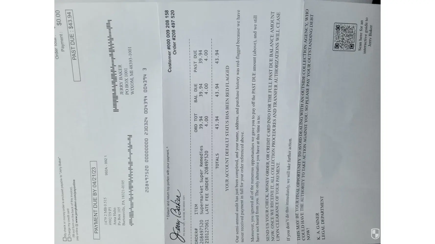 My friend, 92 years old and in a nursing home, received a bill that claims to be for 'Supermarket Super Remedies', $39.94 + $4 late fee. She has neither ordered nor received a book.