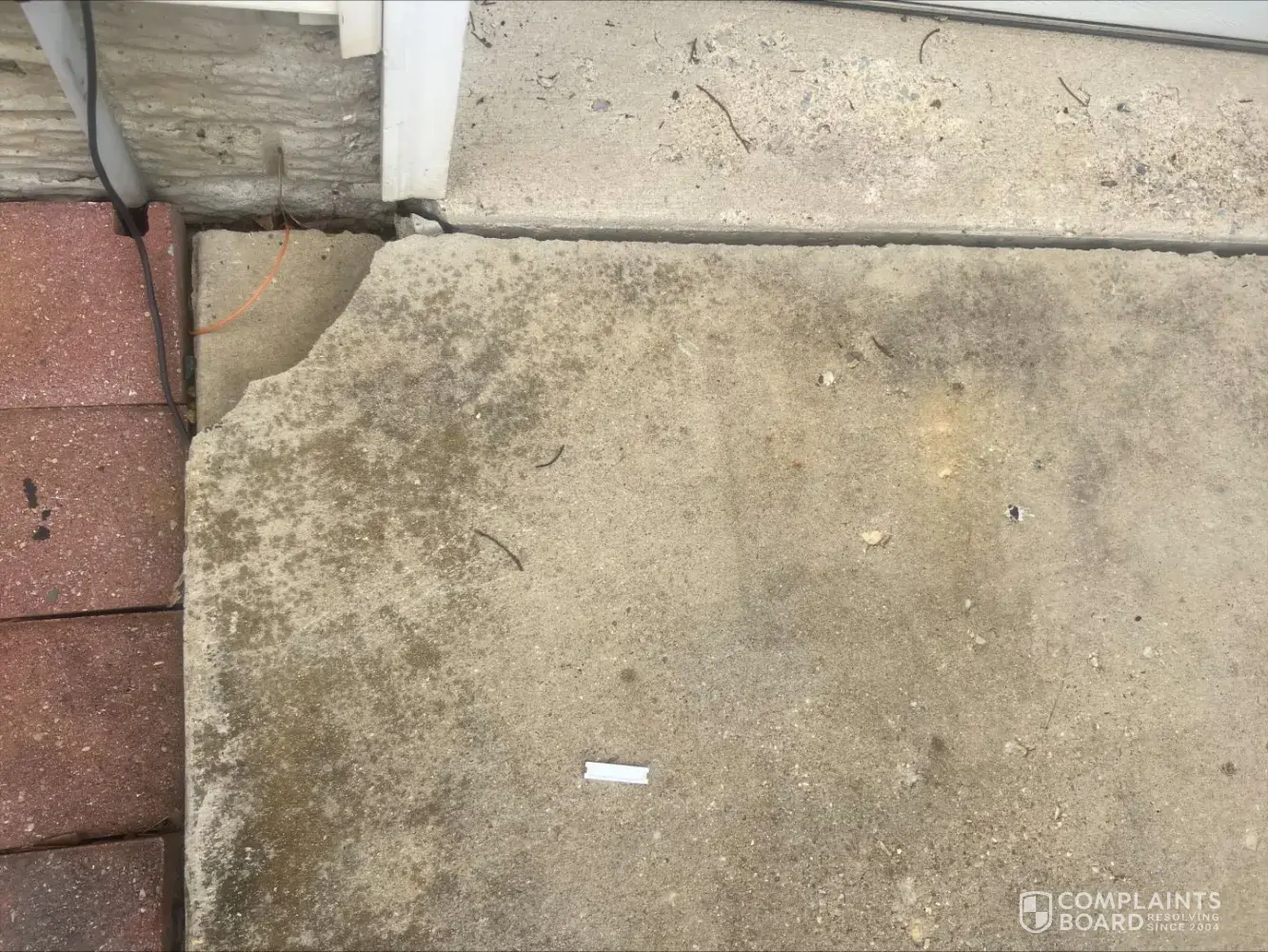 A complete lack of customer service, and substandard workmanship involving the leveling of my sidewalk