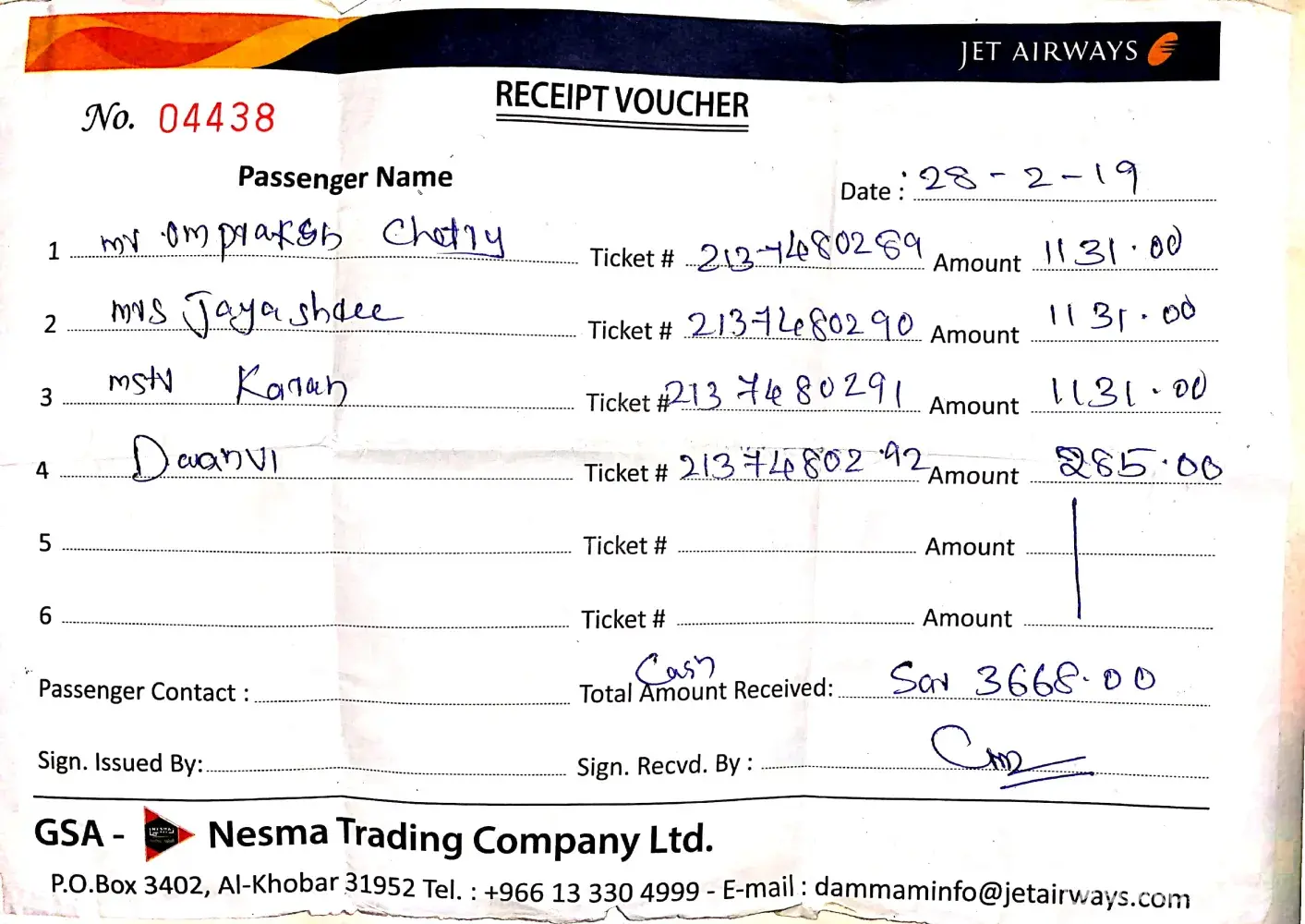 I have been behind them since then, send multiple emails to guest relation and many other id's belongs to customers support and Dammam helpline also called their Indian helpline end number of time but no positive response, my entire vacation plan has been collapsed because of Jet Airline.