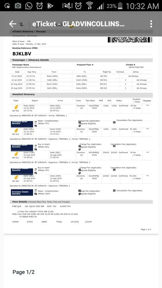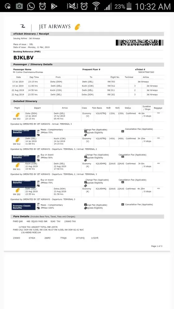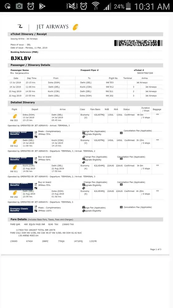 We had a booking with jet airways which we made in the month of January itself. Booking details as below,