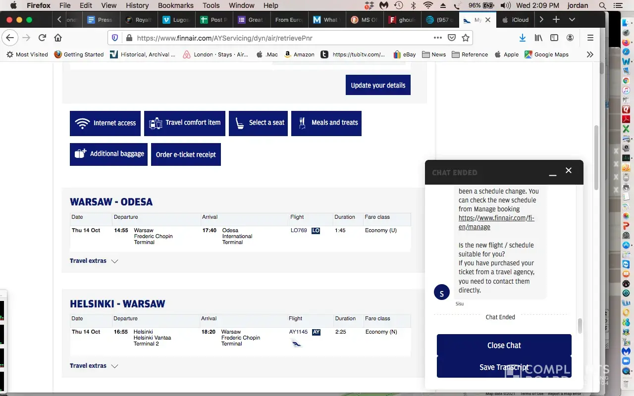 *Helsinki-Warsaw-Odessa flights — note the flight to Odessa [top] departs before the flight from Helsinki arrives.