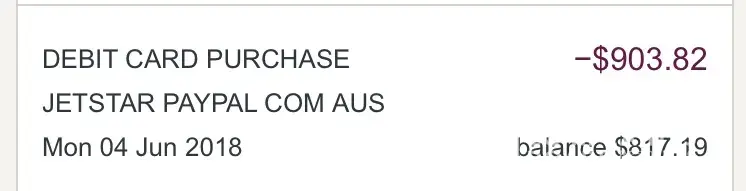 This morning (June 6th) whilst conversing with Jetstar's online chat regarding a baggage enquiry, I discovered that another $903.82 had been withdrawn on this same date.