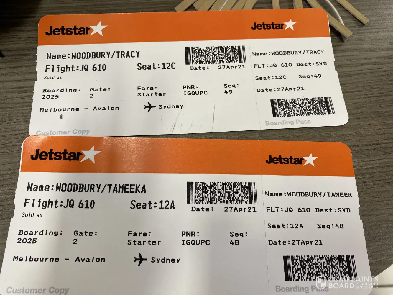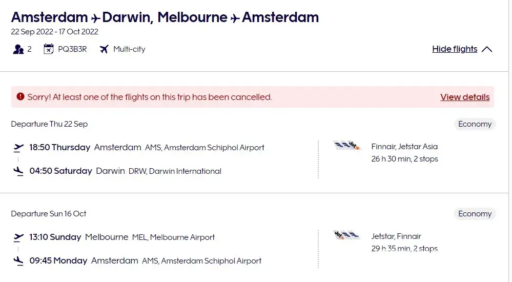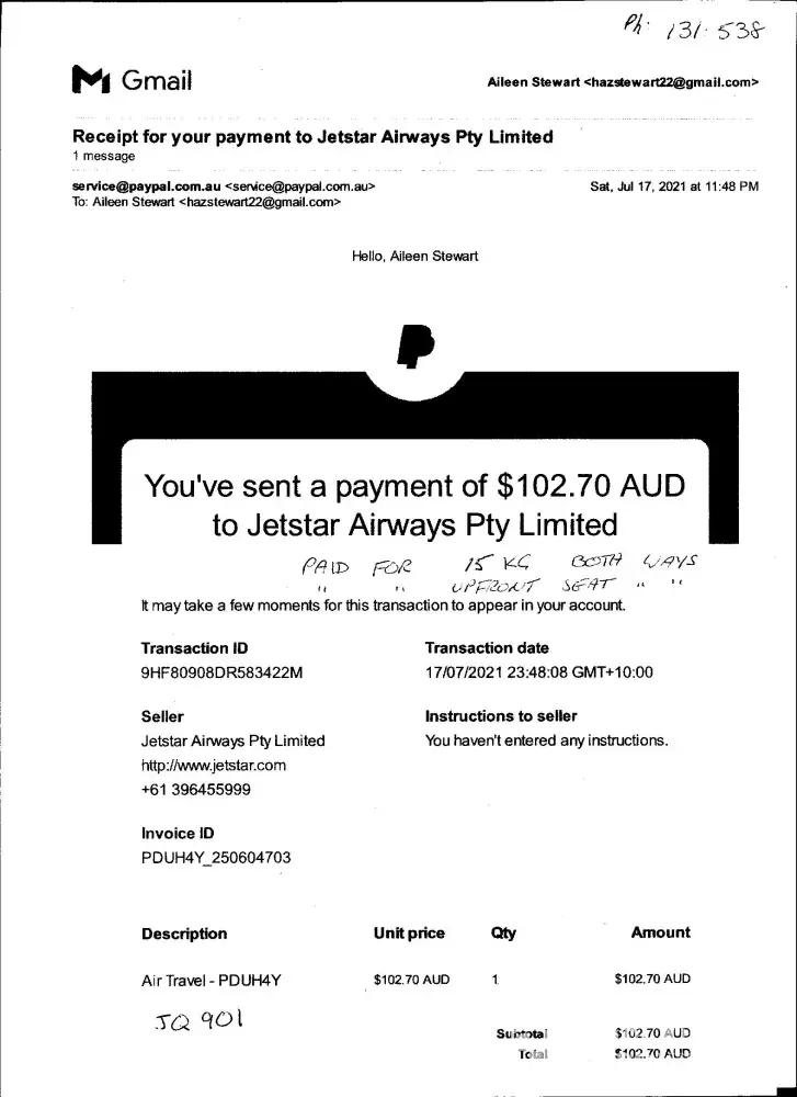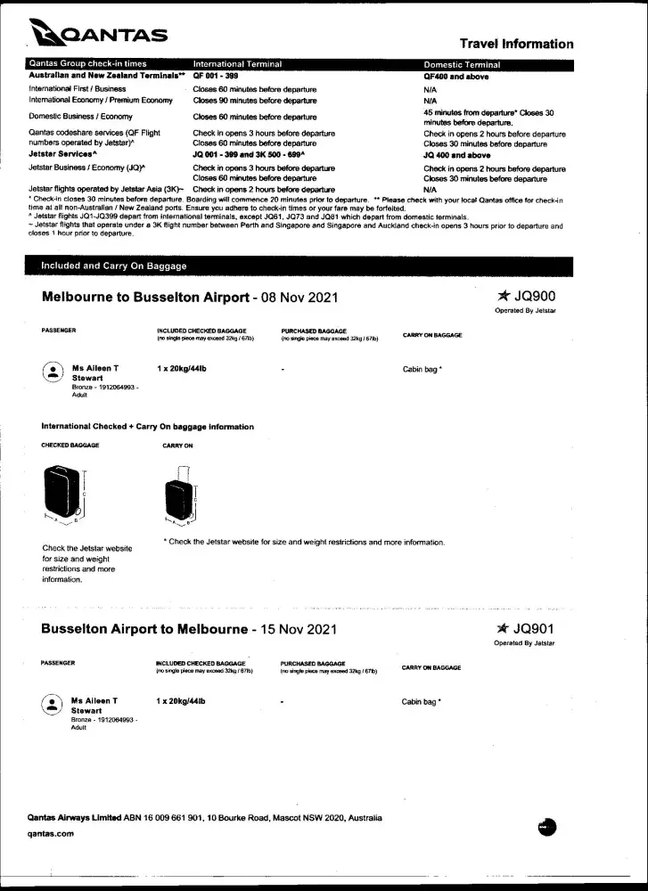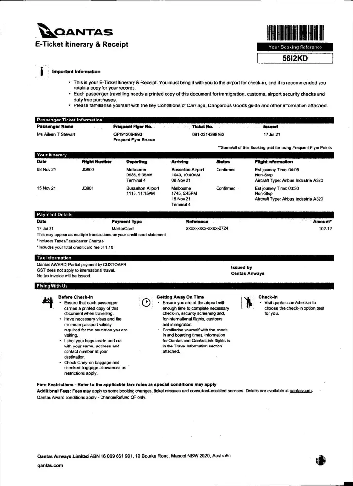 Qantas booking ref. 5612KD / Jetstar ref. PDUH4Y