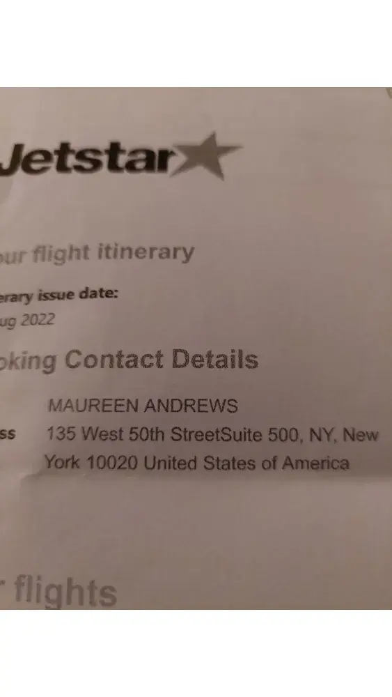Please change home address on itinerary for Maureen Andrews Flight reference number TFW9QY It has been booked for 28th August 2022. This is not an American address at all and must be changed for me to travel. Please amend this as soon as possible. I cannot travel on this home address. I do not live in America. I live in New Zealand