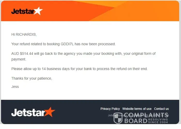 till now, FinnAir nor my travel agency Vliegwinkel.nl did not receive the announced (9 dec. 2022) Jetstar refund of AUD $514,44. See attachment.