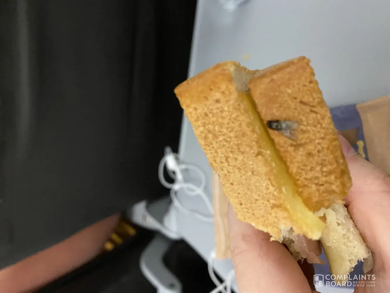 On the 16/1/2020 flight number jq478 Melbourne to Newcastle I ordered a ham and cheese toasties after eating half of it I discovered it had a fly baked into the crust of it. So, I contacted a flight attendant and let her know of the issue, at the time the attendant did not believe me, so she took it away and examined it. The attendant then returned and confirmed that it was a fly. I was then offered another toasties which I declined as I was feeling rather nauseous. I was not offered a refund or any other compensation at the time. The attendant said that they will lodge a complaint to the catering company. Later, the attendant approached me and said so we are all good then are we. I feel this is to be very unprofessional and did not aid in my help in any way.