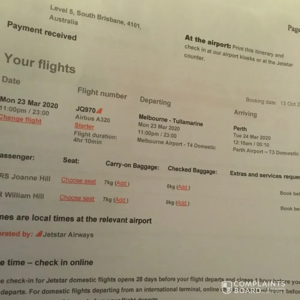 Overall, a really poor experience with Jetstar - misleading communication and I am baffled at how I can even raise a complaint with them. I believe that as they did not provide the service I had paid for, that I am entitled to a full refund. They misled me as a consumer into thinking that a credit voucher was my only option.
