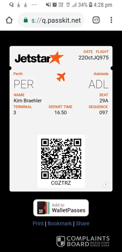 Following this we called Jetstar for a resolution but customer service could not offer us anything. No solution!
