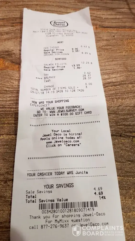 She was extremely rude and unprofessional. I USED TO do a lot of business at Jewel Osco but that will likely be reduced dramatically. Someone this rude negative should NOT be in management! It’s a bad reflection on the entire company.