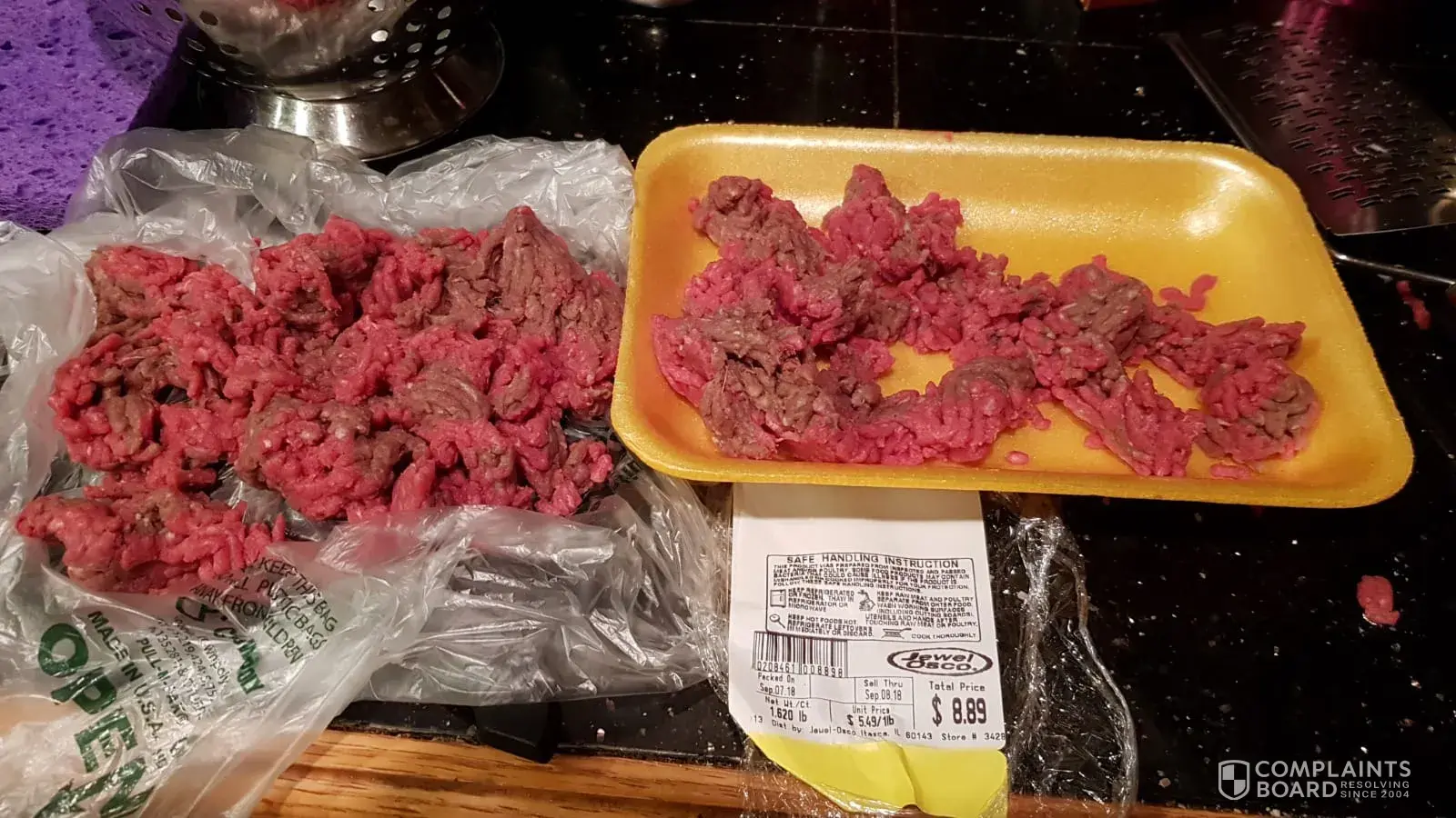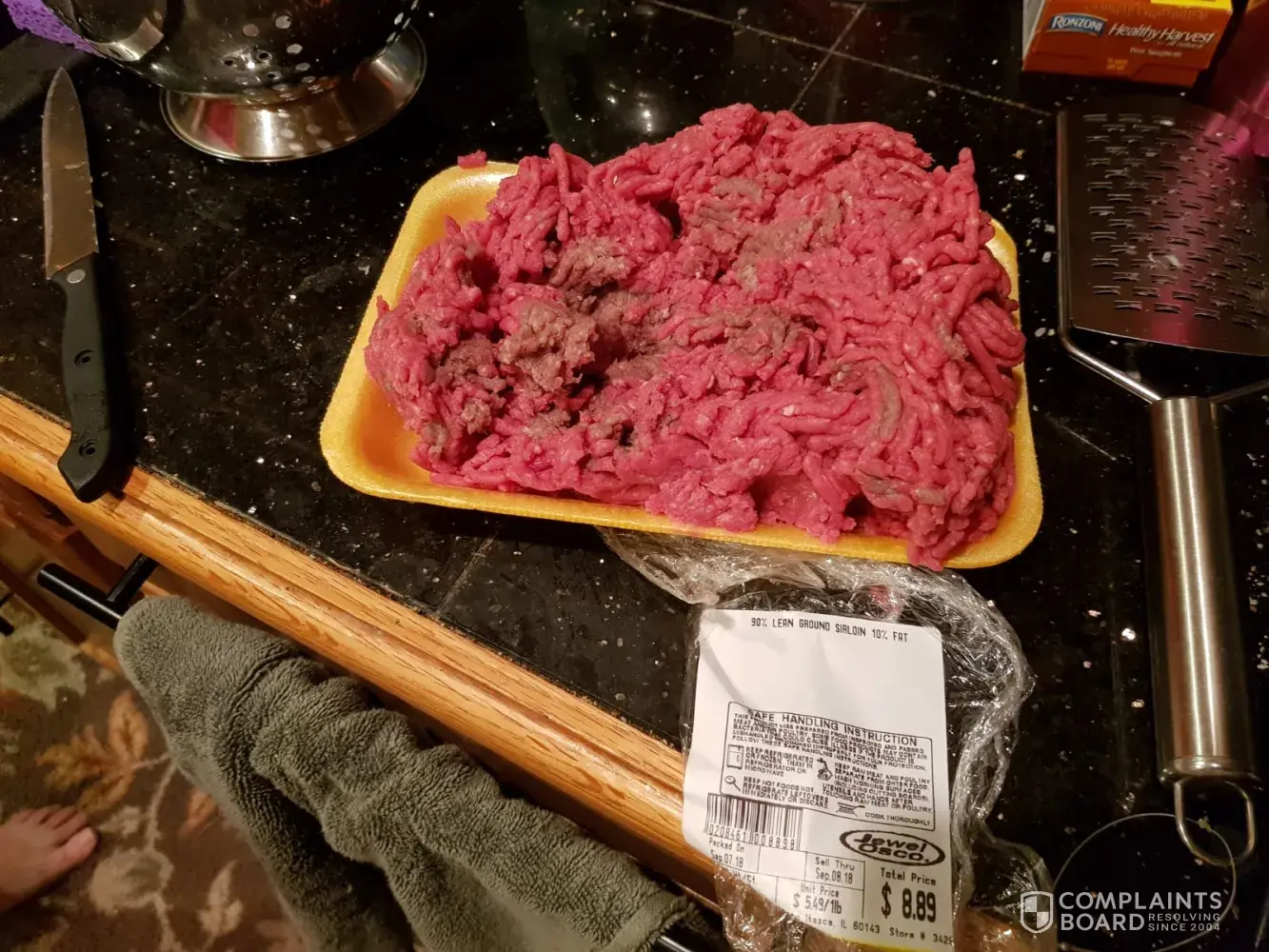 Earlier today (9.7.2018) I bought lean ground sirloin at the Evanston Chicago ave. branch. I requested the butcher to ground the meet for me but he refused, so I had to buy a package already made. Imagine my disappointment this evening when I found that inside the red meet where big chunks of brown meet with a bad smell. It's quite obvious that old meet was meet to fresher meet in order to give the impression that all meet was of high quality. Needless to say, I expect a full refund and compensation for a ruined dinner. I'm appending the receipt as well as pictures of the meet.