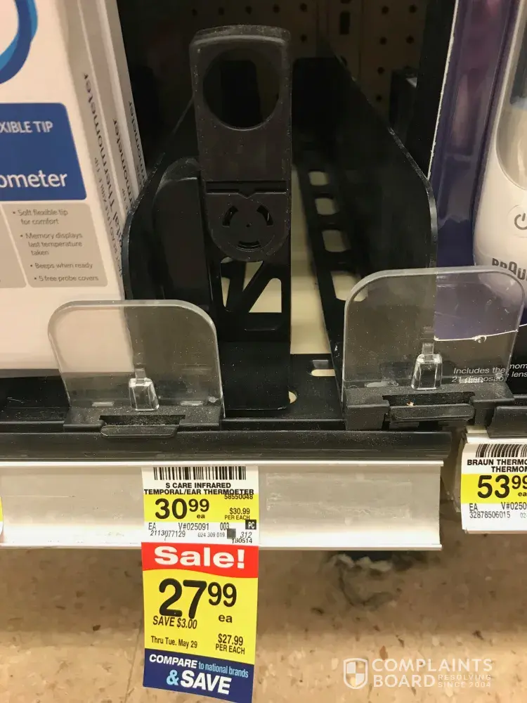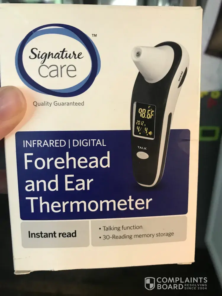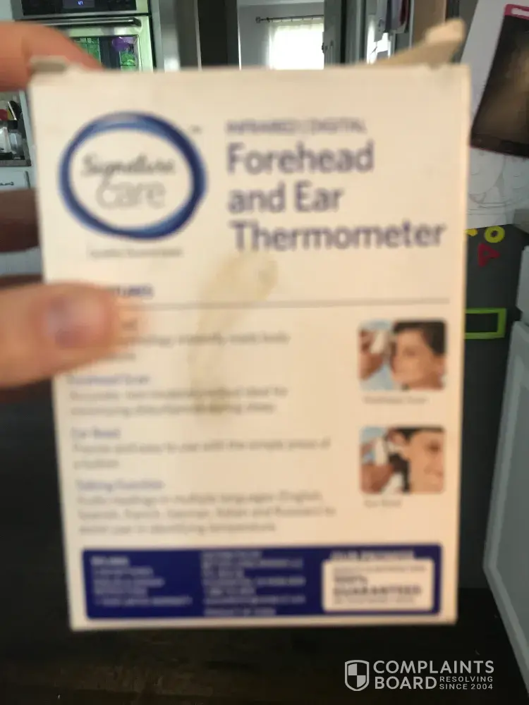 On Wednesday 5/16/18, I picked up a Rx for my baby at the Osco Pharmacy located at 2775 Pfingsten Rd in Glenview, IL. He was running a fever and I needed an accurate thermometer (was having a hard time getting an accurate read with a regular thermometer) so I grabbed the last forehead and ear thermometer on the shelf which was marked on sale for $27.99 (see picture). The box look a bit damaged (faded in color and a stain on the back) but was sealed so I purchased it anyway because it was the last one (see picture of product) I checked out at the pharmacy along with my prescription and a bottle of infant tylenol. When I got home and opened the product it didn't work so I replaced the batteries. The forehead scan read 94 degrees celcius when the baby was running a 102 fever previously. When I took off the cap to try the ear scan, I noticed the product had clearly been used with ear wax build up on the end. Unfortunately, I only had the pharmacy print-out and not the store receipt. At customer service, I was told the pharmacy could look it up since it was purchased there. I went to the pharmacy and asked for the manager where I was told I was at fault since I bought a damaged product. She said "Why would you buy something that looked like this?" I explained that it was the last one and I needed it. She said her hands were tied because their systems would not allow the return. While I understand having a return policy and take responsibility for losing my receipt, I should not be out $30 for an unsanitary, used, defective product that was sold to me and should not have been put in this place. I have been a loyal customer of the pharmacy and the Jewel store at Pfingsten/Willow and don't appreciate the way I was treated. I would like a full refund because this product should not have been put on the shelves and sold to me in the first place.
