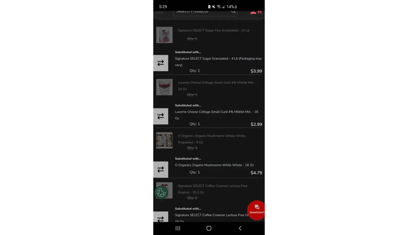 Desired outcome: My refund for the price it was charged and my balance for the lower priced substituted items.