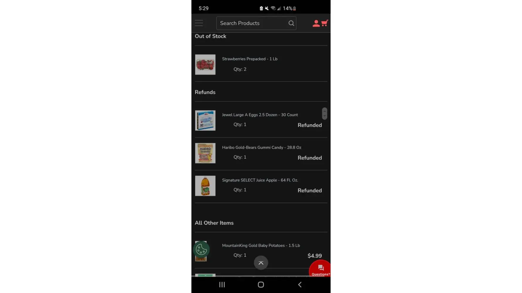 Today I ordered through the jewel app. My order had lot of things missing and it only partially pick items and then just sent a reund request lower than what I paid for. I spent $74 and only got a few things and it won't let me go back to the order. This were substituted with out permission and at lower prices, leaving me paying triple for a substitute. I did not get my strawberries but charged. The gummy bears and eggs, were refunded at a lower price