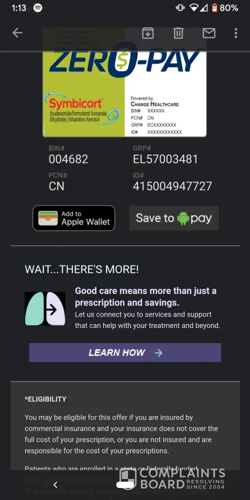 Hello, I recently tried to use a Symbicort coupon at the Elburn, IL Osco pharmacy. The pharmacist said the coupon couldn't be accepted because I am not insured. The coupon says right on it "if you are insured by commercial insurance and your insurance does not cover the full cost of your prescription, OR you are not insured and are responsible for the cost...