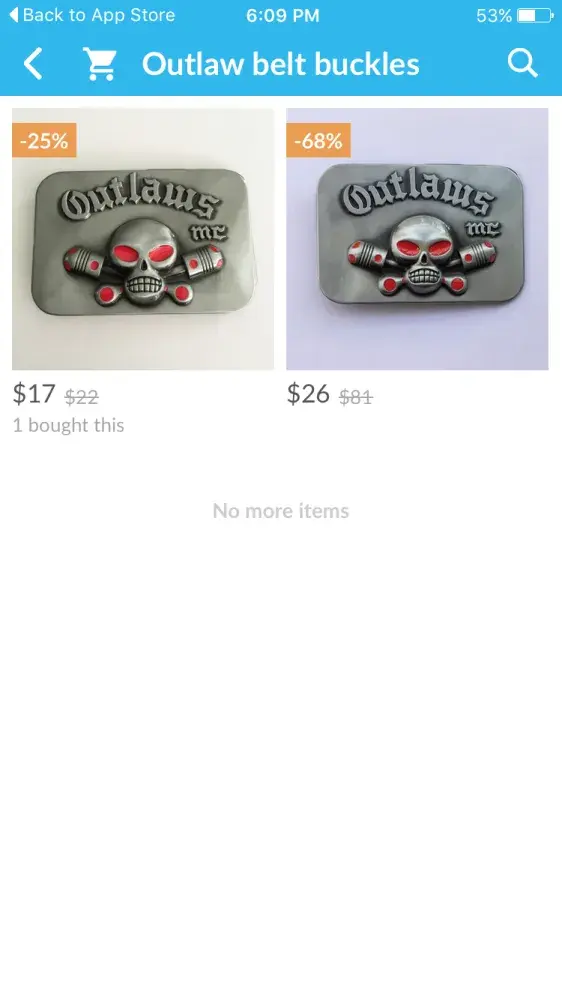 ******attention attention attention***** My name is Nate 1%er from Outlaws MC Australia and I'm writing to inform you that you are illegally selling belt buckles which are subject to copyright, we have notified our lawyers and will persue this intensely, I can only hope you immediately put a stop to sales and the vendor. You can contact me by email, [protected]@live.com.au. Thanks. Nate 1%er