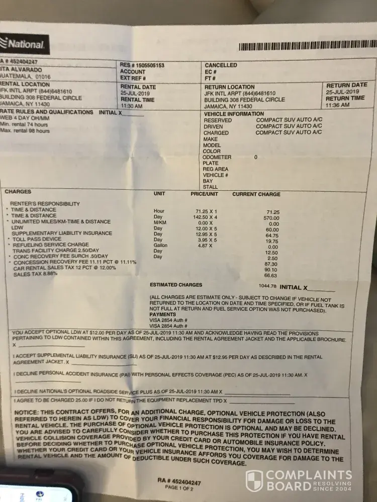 I made a reservation thru expedia for a car and supposed to charge me aroung $500 and the rental worker charge me $1044 for 4 days. Expending $262 per day for a small suv like eco ford.