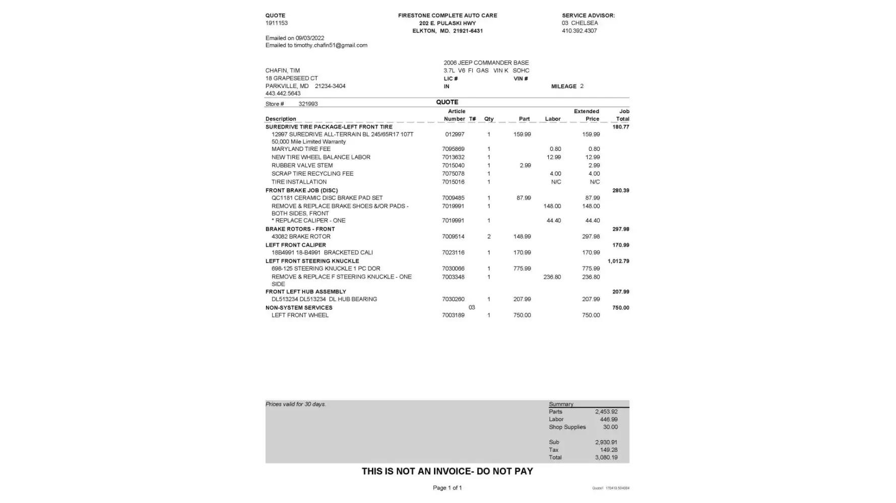 2 weeks without a peep from Team Car Care West, LLC, the franchise that owns and operates this location. And my Jeep is still parked at the mechanics lot. Luckily he was cool enough to allow me to leave it there without charging a storage fee...yet. All I want is my Jeep back to the way it was before the oil dump happened. Especially since I just put in a new / rebuilt engine 10,000 miles ago... this is so frustrating and disappointing. And no way to run a business!