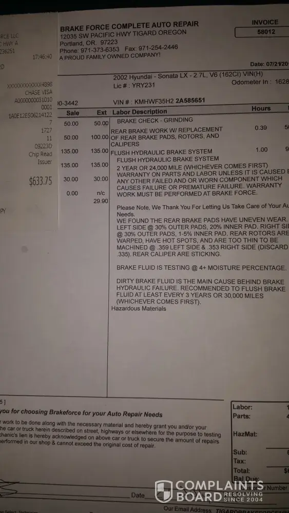 On April 27th, 2018, we brought our car into Jiffy Lube in Beaverton to have the brake pads checked. We were told the rear brake pads were in great condition, but the front brake pads needed to be replaced and the brake fluid in the front of the car flushed. We also had our oil changed and all other recommendations by the jiffy lube staff completed that day. Less than two months later our brakes were making noises again. We brought the car back in to the same Jiffy Lube on 7-20-18 and were told that the rear brake pads were in such poor condition they were basically metal on metal. Jiffy Lube staff were able to tell us this without even taking the wheels off of our vehicle and gave us a repair estimate of $500. We explained that the rear brake pads were fine in April and we were apologized to and given coupons for oil changes. I called to speak to a manager that same day to discuss reimbursement for the damage to our brake pads and was yelled at by the manager. He then told me we "probably couldn't afford to have all four brake pads done at the same time" and that's why our rear brakes were now in such poor condition. He also said he didn't work at that location at the time of our repairs so he didn't know. He said he would have another manager call me. An hour later, Deandre called me, profusely apologized and promised that someone from corporate would call me within the hour. If I didn't receive a phone call, he assured me I could call him back. I never received a phone call. When I called him back, I spoke to a staff member who told me Deandre was taking his second lunch of the day and would not be returning. I never received any return calls. On 7/21/18 we took our car into Brake Lodge. After inspecting it, they found that our rotors were damaged and our calipers had frozen due to brake fluid not being flushed and brake pads not being replaced. The repairs cost $602. I called Jiffy Lube and spoke to Ted who told me I was not telling the truth about the services I received at Jiffy Lube on April 27th. After calling me a liar, Ted rudely told me to bring in my Brake Lodge invoice and nothing would probably come of it. He refused to give me the number of someone else I might speak to. We brought our paperwork into Jiffy Lube on July 27th and I received a phone call from the regional manager of Jiffy Lube. Again, I had a conversation that can only be described as unprofessional and borderline rude. I was told that he tried to check camera footage of the day of April 27th but found nothing and there was nothing he could do. After a few minutes, he refused to speak to me or answer my questions. I was told his boss was out of town and would get back to me when he could. I am seeking reimbursement for repairs. My father and I have brought in three cars to Jiffy Lube over the last 20 years and supported the establishment as such. This needs to be made right.