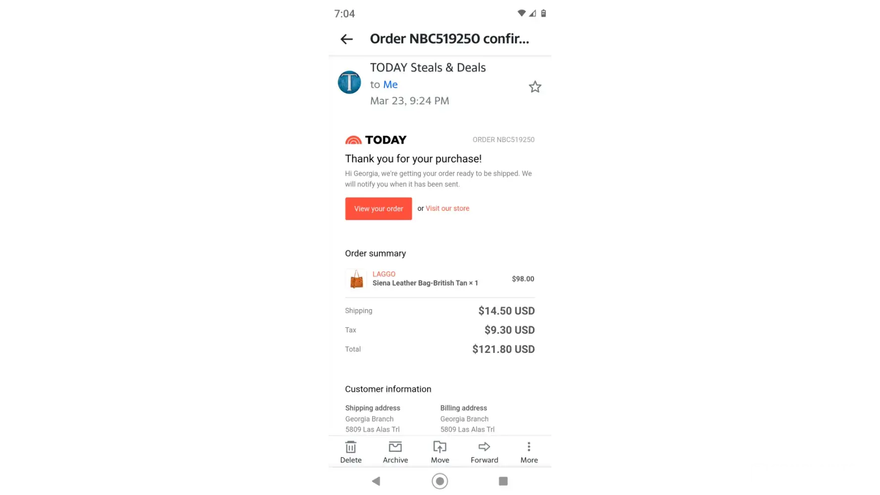 I ordered the laggo sienna bag on march 23, 2022 from the today show, jill's steals and deals, order nbc519250. I received it today april 12th and was very disappointed on it's quality... The material is thin and has an awful chemical smell so I don't believe this is made of leather. At a total cost of $121.80 with shipping, it was not a steal.