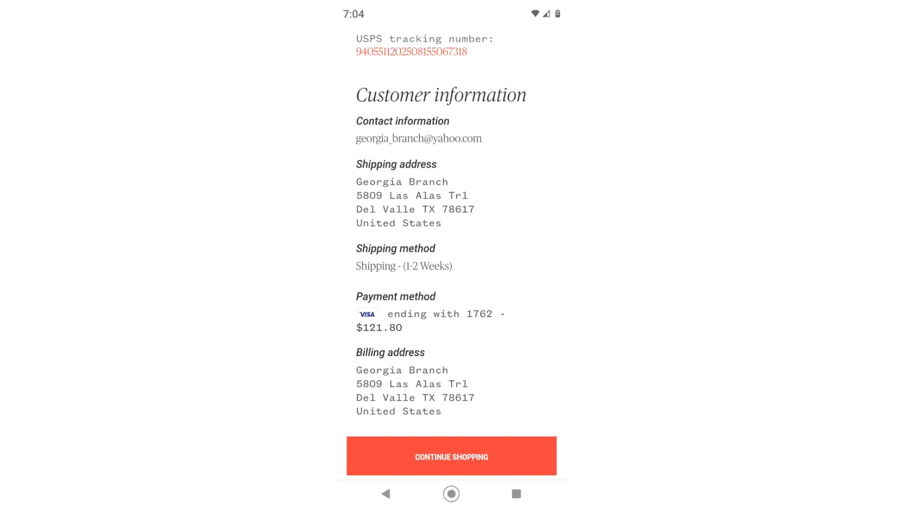 Shipping address