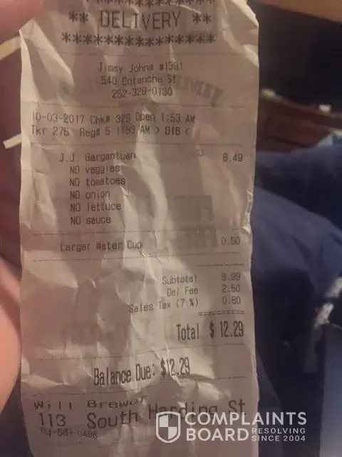 David Brzezon Nice, stiffing the driver that had nothing to do with making your sandwich. I'm sure they will remember the next time get an order from you.