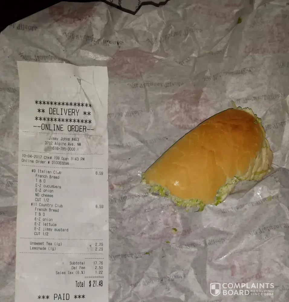 Again, I have no plans to stop eating at Jimmy John's or to degrade its reputation; I love your product. I am not outrageously furious or anything, but I am severely disappointed.