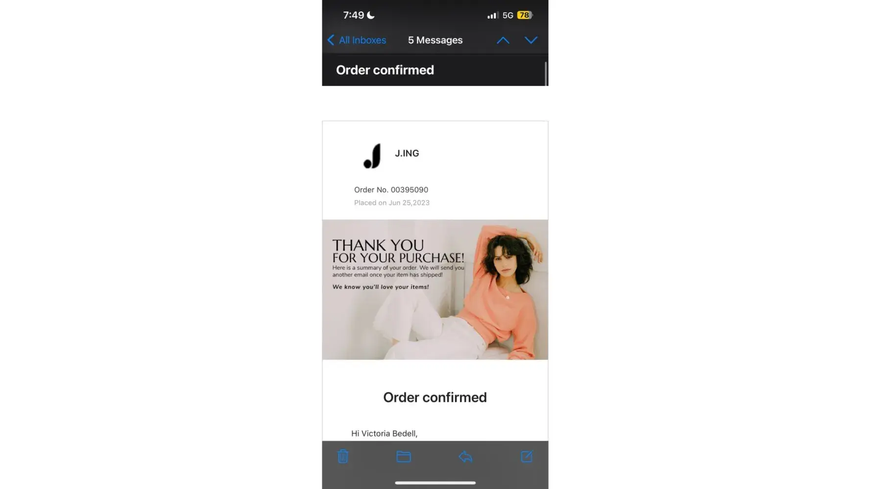 I made a $154.58 purchase ( auto paid through PayPal) for 7 clothing items from J.ING on February 23 2023.