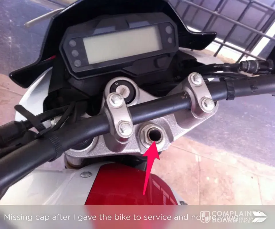 I have bought Yamaha FZS FI Version 2.0 on February 2015 at JMB Yamaha Annanagar paid full cash before the bike was shown, later the Sales Guy gave me the demo bike (which is used for demo and have some people already ridden it), when i prompt why am i being given a demo bike the sales guy just said this is the only available piece. Anyways i bought the bike nonetheless. January 12 2016 i went to give the bike for 5th free service (at Aminjikarai). I was being told to come by 6PM, i went and took the bike at 6:30 PM, didn't check much since it was dark already and i had to rush back to office. Today afternoon i noticed i missed rubber handlebar damper. I got frustrated and i complained, they were kept on saying we didn't take it out. At the end the guy says you will need to buy it. I mean we bought their product and giving money for the service (please do note that free service does come with a cost i had paid 670 this time). That is what i want to complain why the parts are being taken.