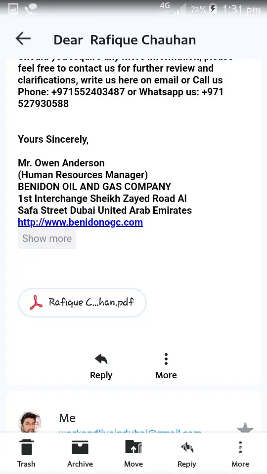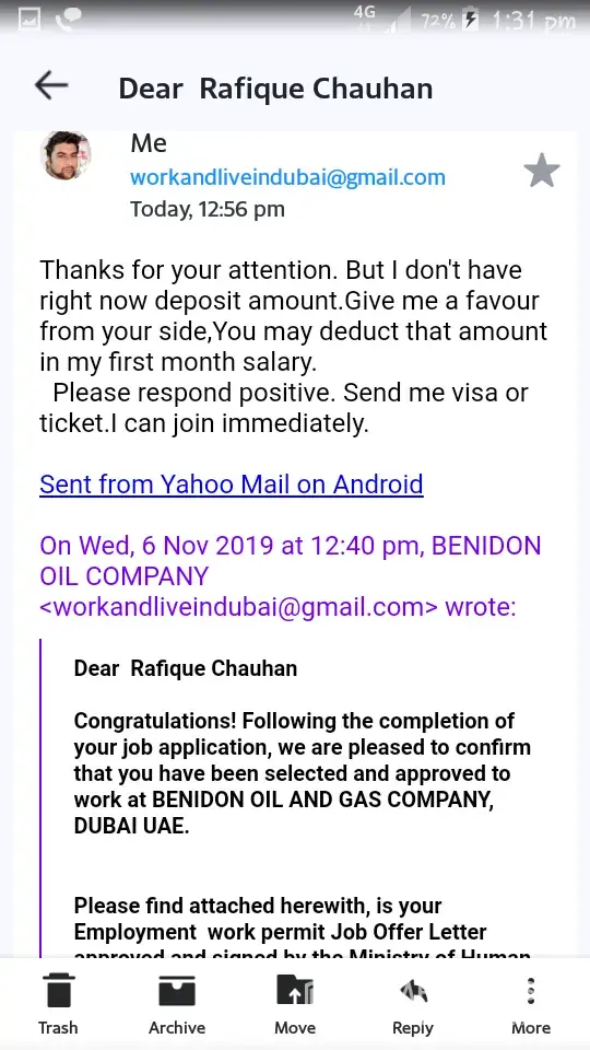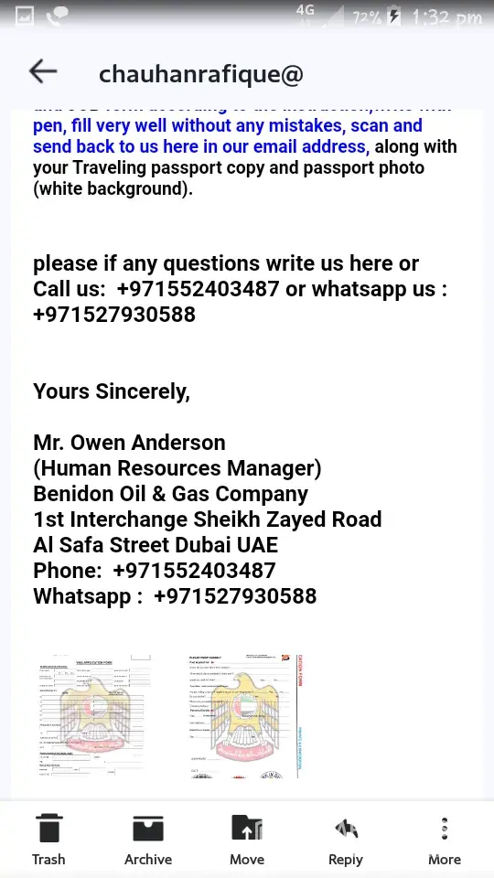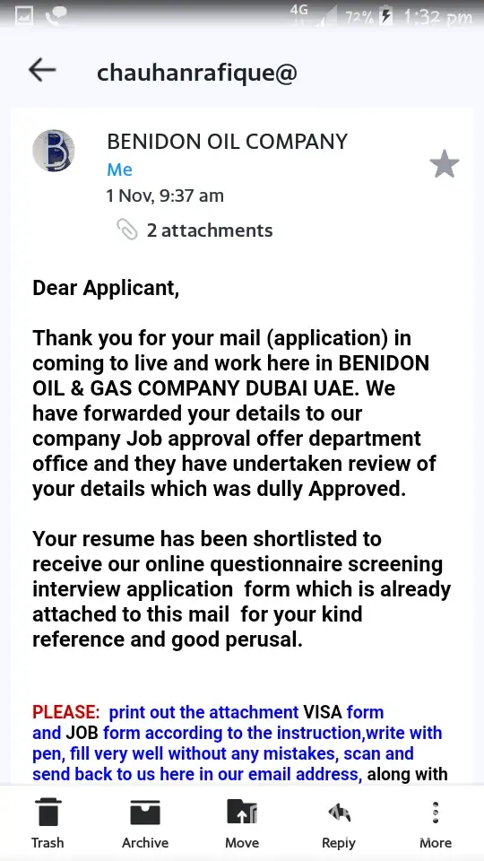 After l was ask again to pay for verification of documents $85CAN, that was when l start asking questions, and ask for refund, their immediately arrange a fake interview from an email bearing the name of dubai national council, com,