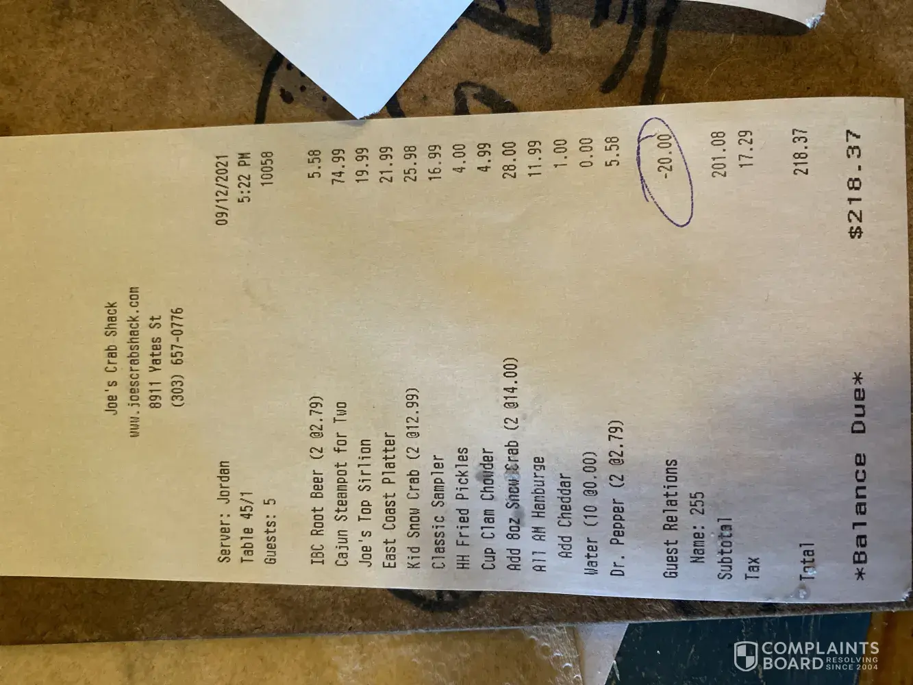 I was visiting gatlinburg Tennessee and my family wanted joe crab shack Tuesday night. We stopped places a fairly large order $140 and waited 40 mins to get it to go. It was 8:51 when we received our food and the restaurant was closing at 9. When we arrived home the order was short 1/2 pound of shrimp…. I tried to call knowing people would be in the...