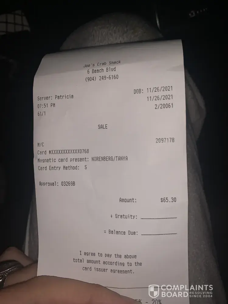 Read full complaintDinner at the Sevierville TN location