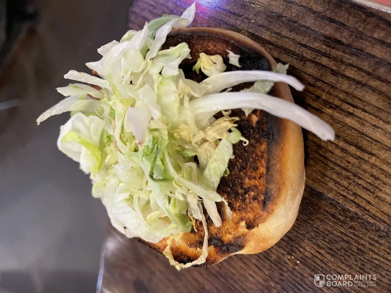 I had to find my server to get my salad, refills and the bill. Salad was so brown it was disgusting. Also, the salad was warm. My crab cake sandwich was a joke. Bun was burnt, lettuce again was warm and brown and wilted. The crab cake was mush and greasy. The whole experience was a bad nightmare. I wish I had taken photos of the salad and crab cake. The pic I did take was taken at the end of the meal.
