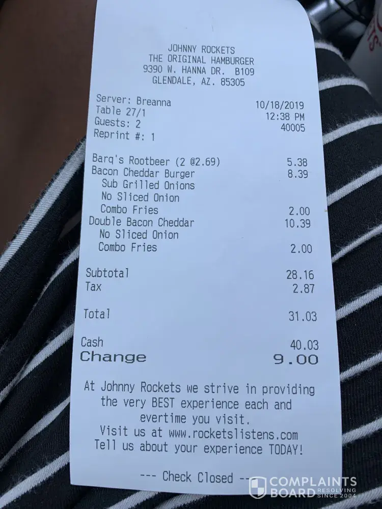 - While Johnny Rockets has a high level of trust, our investigation has revealed that the company's complaint resolution process is inadequate and ineffective. As a result, only 7% of 13 complaints are resolved. The support team may have poor customer service skills, lack of training, or not be well-equipped to handle customer complaints.