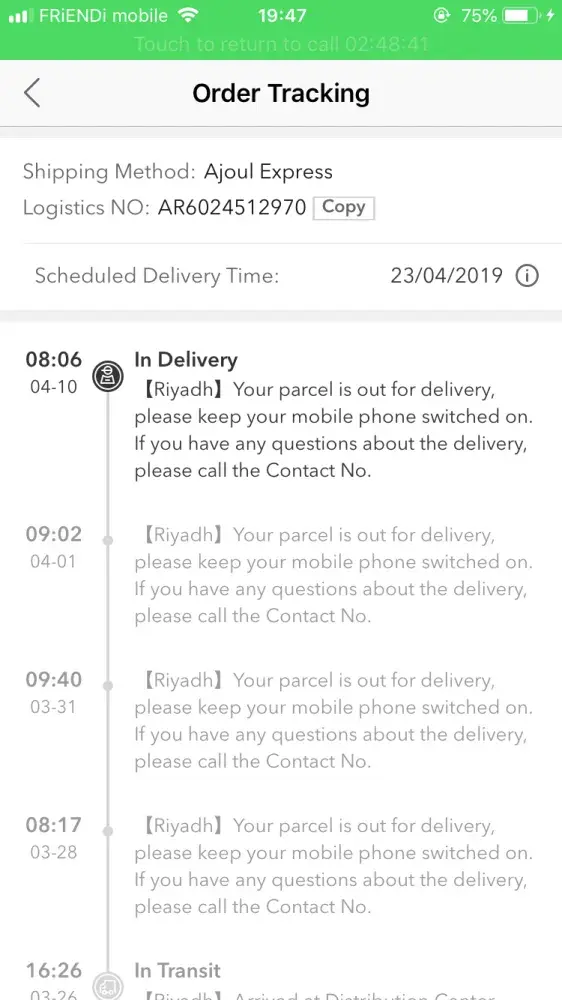 I called up Fetchr then and told them about this. It took them two weeks to get the shipment to dubai.Â