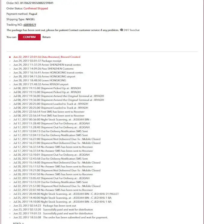 24 july 2017 I came back and contacted naqel that i'm ready to receive the package. I follow up again on daily basis with them and exaggerate my issue to their complains dept. next with management dept. with no result.