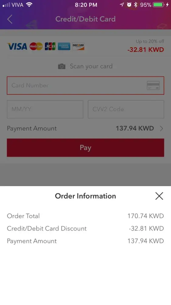 2- While we were going to pay using credit card a notification of KD 32.81 appeared as a discount for using credit card ). (Attachment 2)
