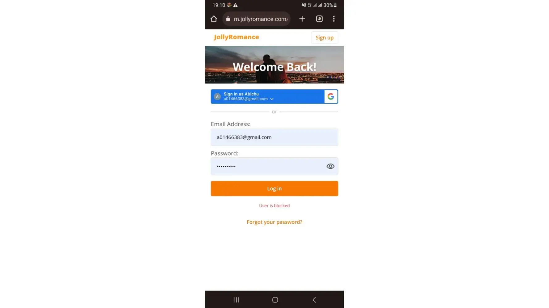 I signed up jollyromance account yesterday and blocked without reason