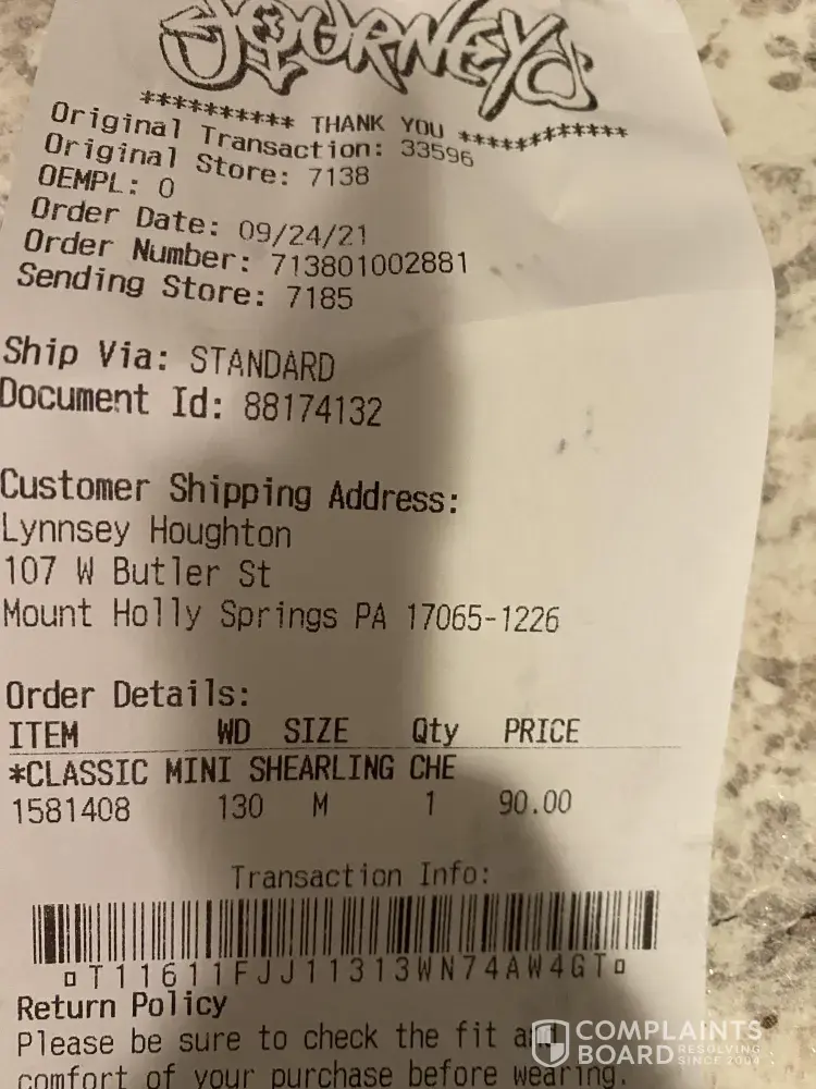 Journeys Horrible cs / item not received