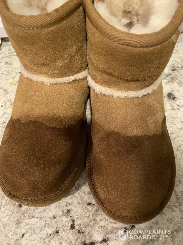 I bought my daughter ugg boots she wore them once. they didnt have any of her size in any of the styles in the story. they had to be ordered and shipped to my home. when i asked about protectant they told me they had none in the store that i could use the same protectant i had used on my uggs at home it would work. my daughter wore her uggs one time in the wet grass, it wasnt raining and her uggs are completely ruined. nobody will help me, nobody will call me, i dont want my money back i just want the same pair of for my daughter as her father had to work an extra shift to be able to pay for them as a gift for her. i do alot business with your company and i know several others who purchase 4-5 pairs of uggs a year from you. i really dont want to take my business elsewhere i enjoy shopping here but i do not deserve this treatment and my 5 year old deserves her surprise gift to last more than a day. i will not let this go even if i have to file with the better business bureau. i deserve to have these boots replaced. i sent the pictures, the stuff used. and miraculously nobody will get back to me now.