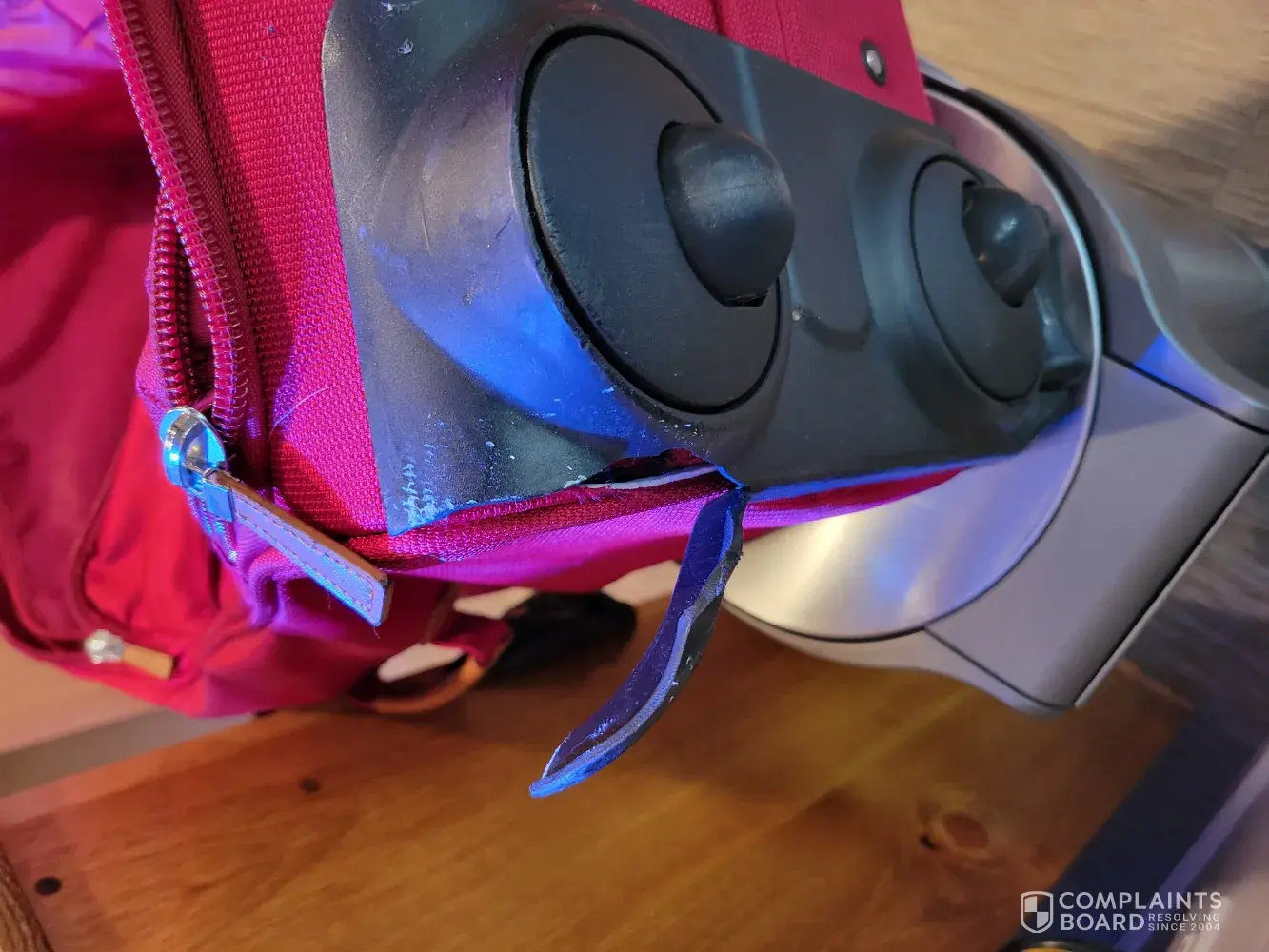 Purchased a two piece set (suitcase and purse like carry on w/RFID protection), from QVC. Pieces appear brand new, except for one handle, on the carry on. It started with a crack in the outer covering and now has several, plus is now hanging by a thread. Please provide me with information regarding replacement. Kim Rothwell. [protected]@epbfi.com or [protected]