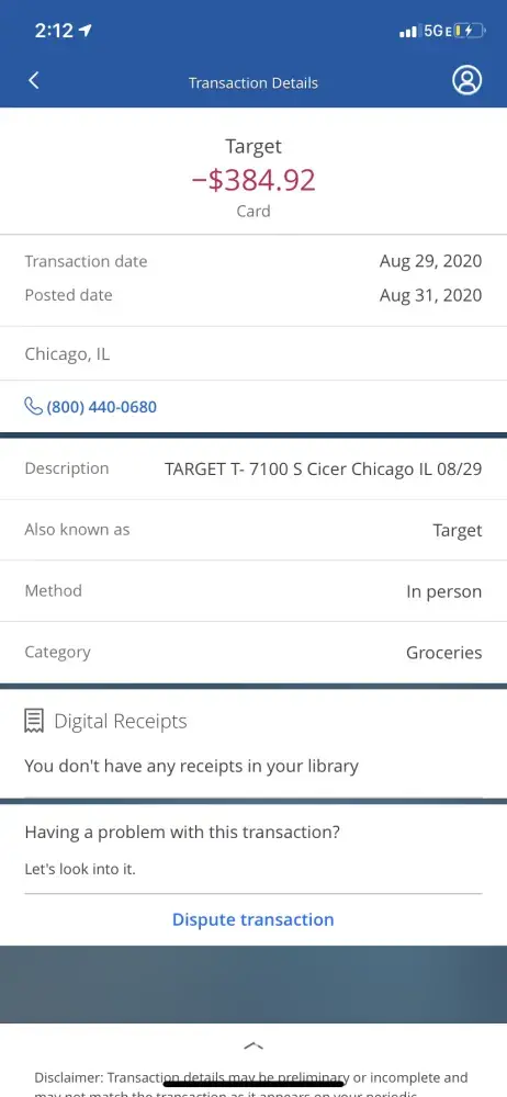 First off, good luck getting anyone to deal with an issue. I finally received a call back from their corporate office from a very unprofessional woman. The message sounded like she was from my local bowling alley. No offense to bowling alleys. This company tries to appear as though one is secure with them. The actual enemies they try to defend you from are their customers. When someone commits blatant fraud with your account you will fight them, trust me to get your money back. I had some loser charge 8 burner phones on my account and Chase tried to claim I made the purchase! BTW I had been banking with them for 40 years. I have over a 735 credit score and any card with them I get denied. Horrible Bank