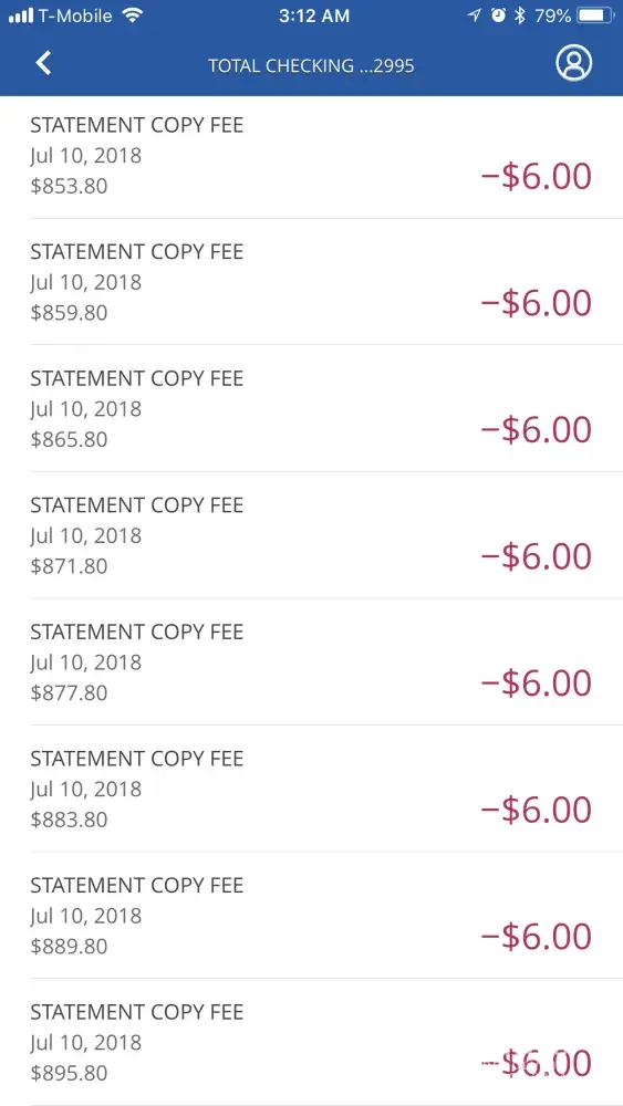 The second time the overdraft charges happened were on June 11th, 12th and 18th. Like any other modern American citizen, it turns out I had more subscription services than I thought. I went there on June 22nd and they said this time they could only refund me for one of the charges.