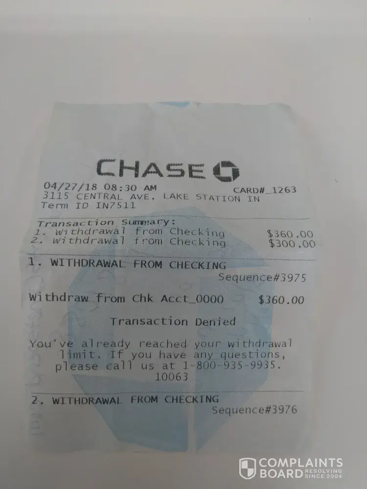 If we don't get an answer soon we will sue and also close out all of our accounts with Chase which is around $300, 000