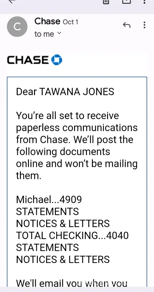 The following has been sent to Chase's legal services twice with NO response or acknowledgement.