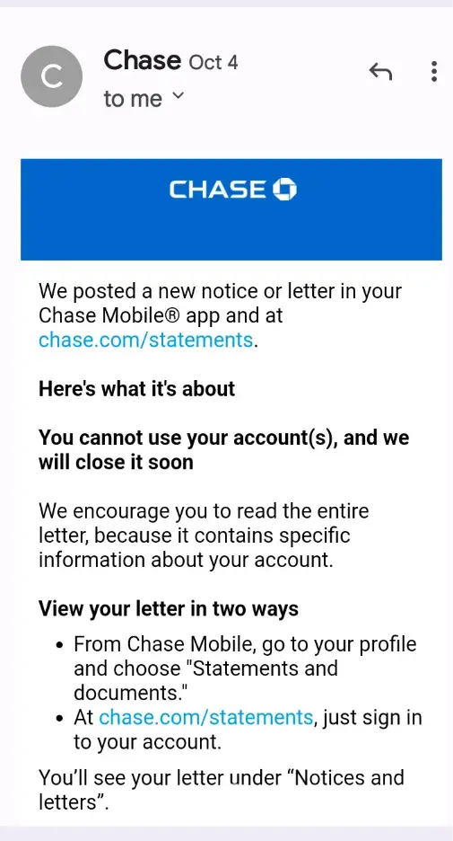 I have contacted Chase offices in Beckley several times and have not gotten as much as an apology and in the process of drafting a "intent to litigate" notice to send out to JP Morgan? Chase.